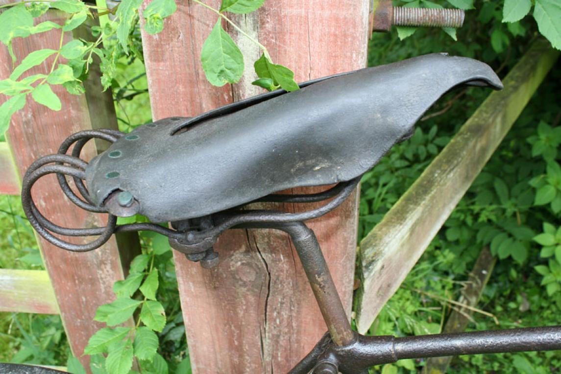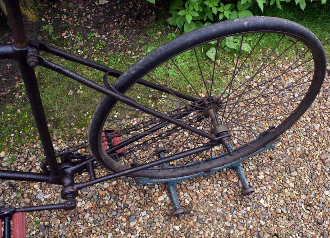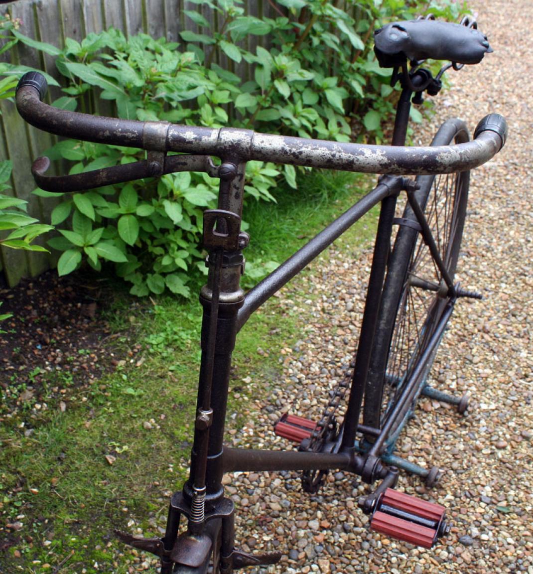 The bike on the pictures shows some interesting details like the early diamond frame with the forward mounted saddle tube. I have seen this construction with other makers as well. Besides that, it is quite a normal early diamond frame. The original saddle is very nice; mudguards are missing.