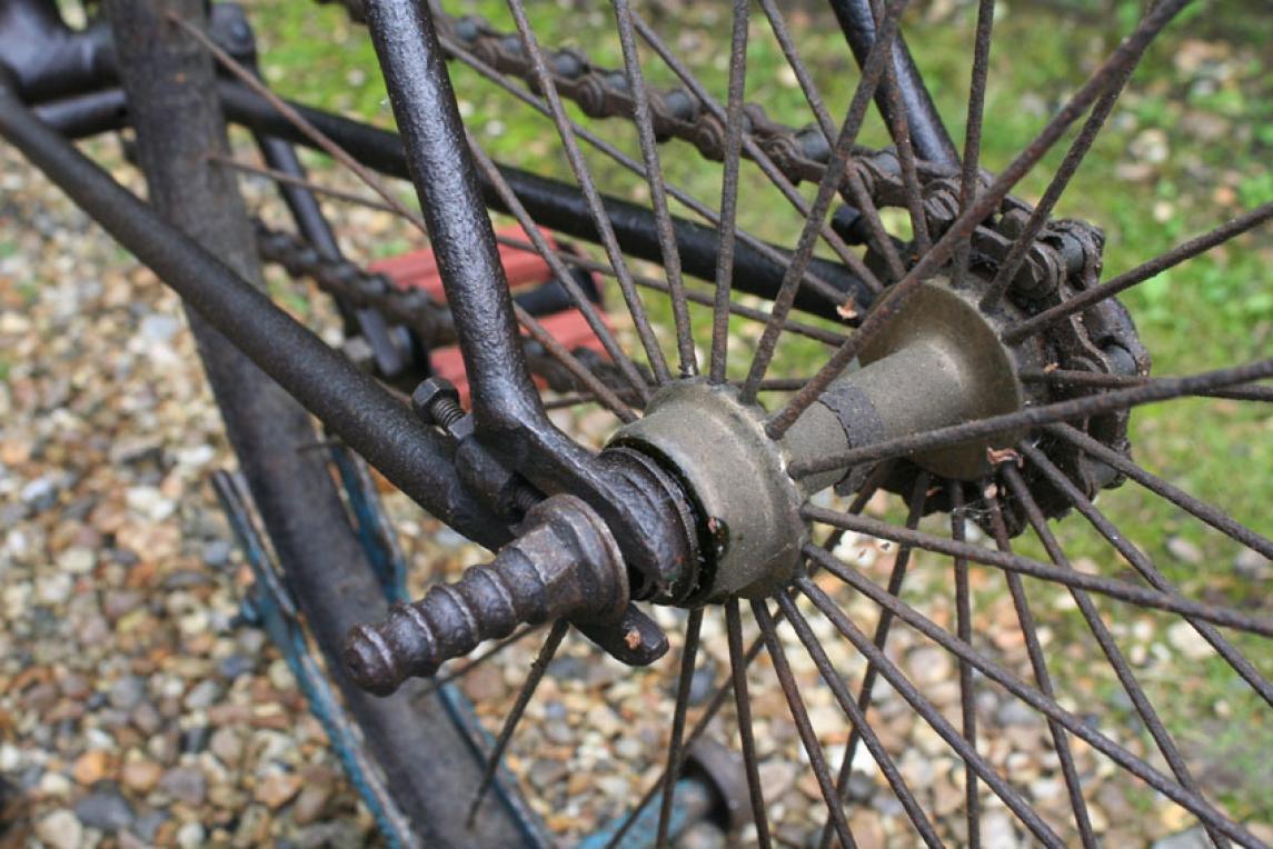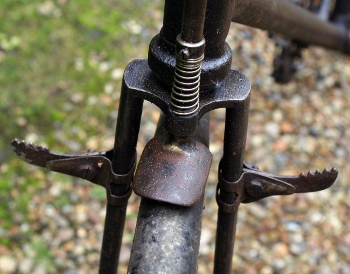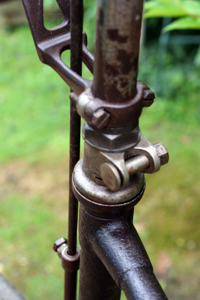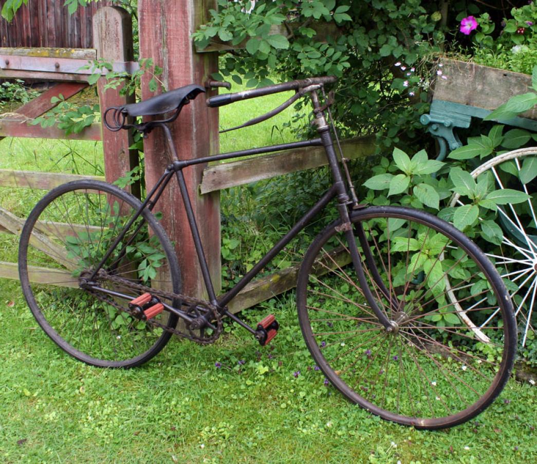 The bike on the pictures shows some interesting details like the early diamond frame with the forward mounted saddle tube. I have seen this construction with other makers as well. Besides that, it is quite a normal early diamond frame. The original saddle is very nice; mudguards are missing.